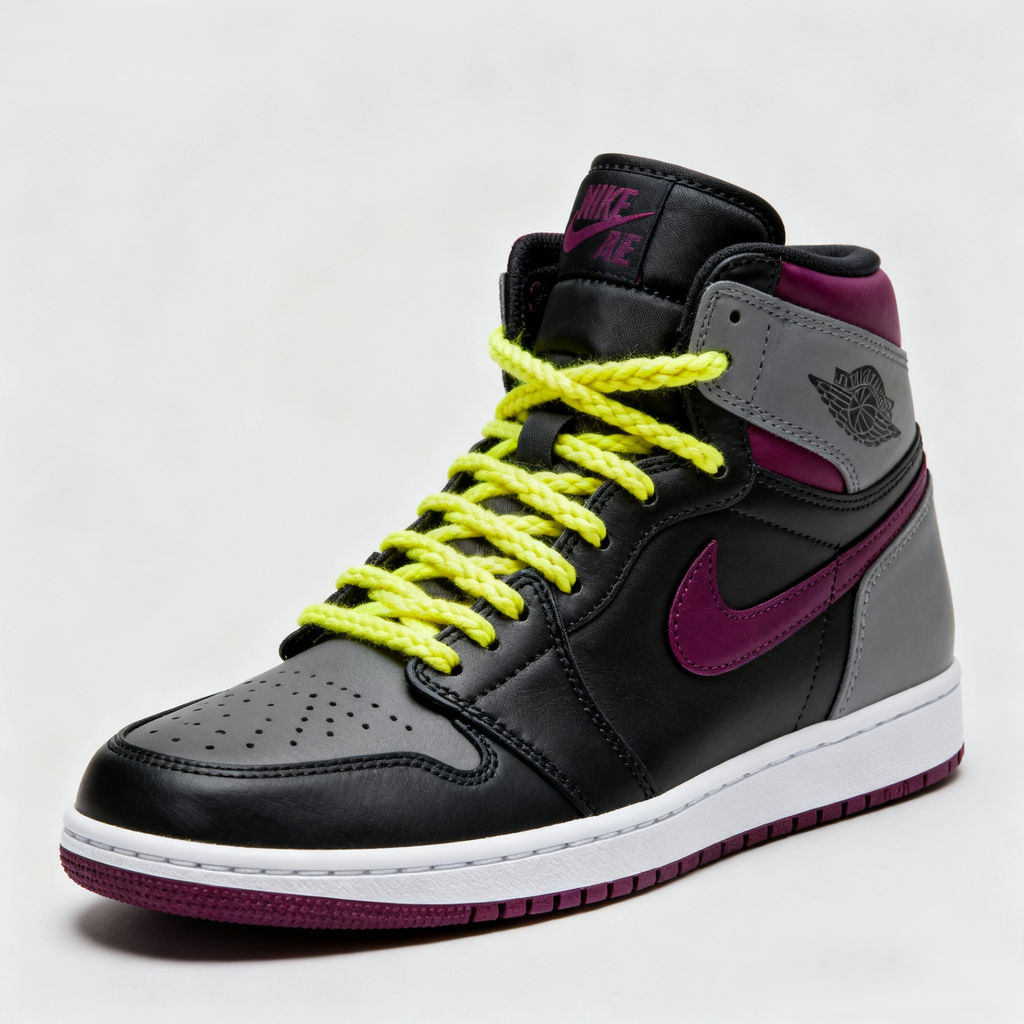Custom Air Jordan 1 Black Gray Purple With Yellow Laces
