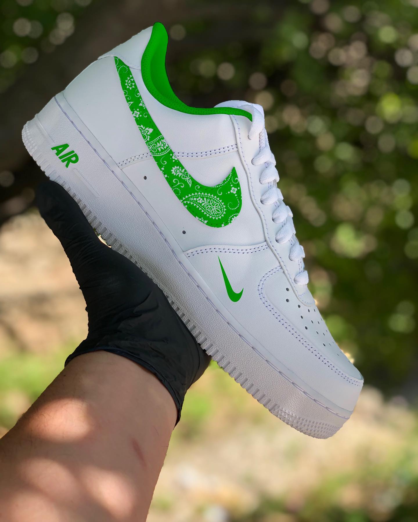 Step out of the ordinary with these Green Flower Swoosh Custom Air Force 1's. Embrace your adventurous side and take a bold step forward with these unique sneakers. Stand out from the crowd and add a touch of risk to your style with these custom kicks. Unleash your inner flower power and make a statement with every step!