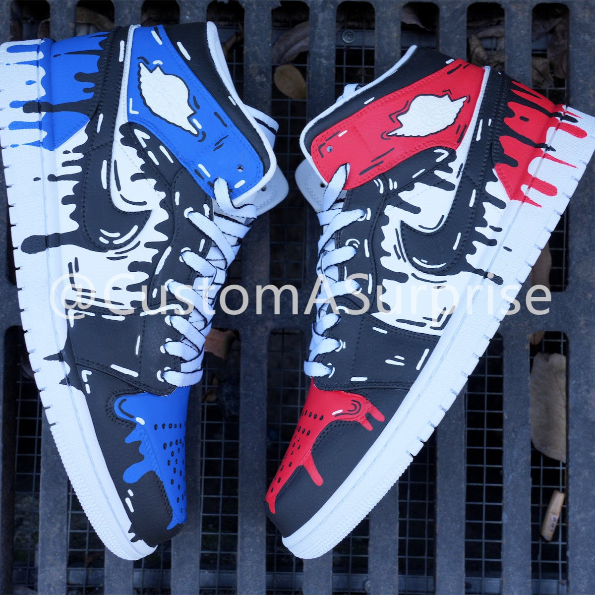 Step up your sneaker game with the Custom Air Jordan 1 Dripping Black Blue Red. Made to stand out, these one-of-a-kind kicks give a bold splash of color to any outfit. With a unique design that's dripping with style, you'll definitely turn heads everywhere you go.