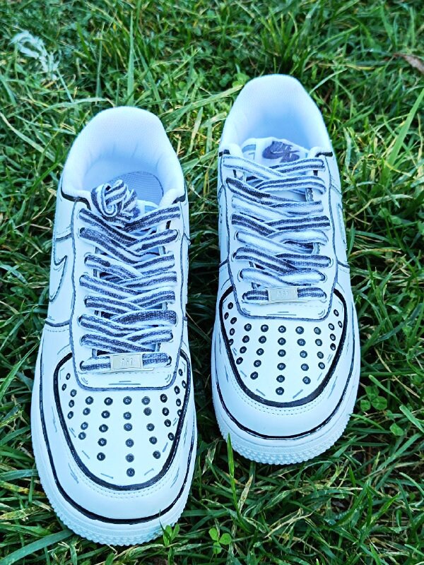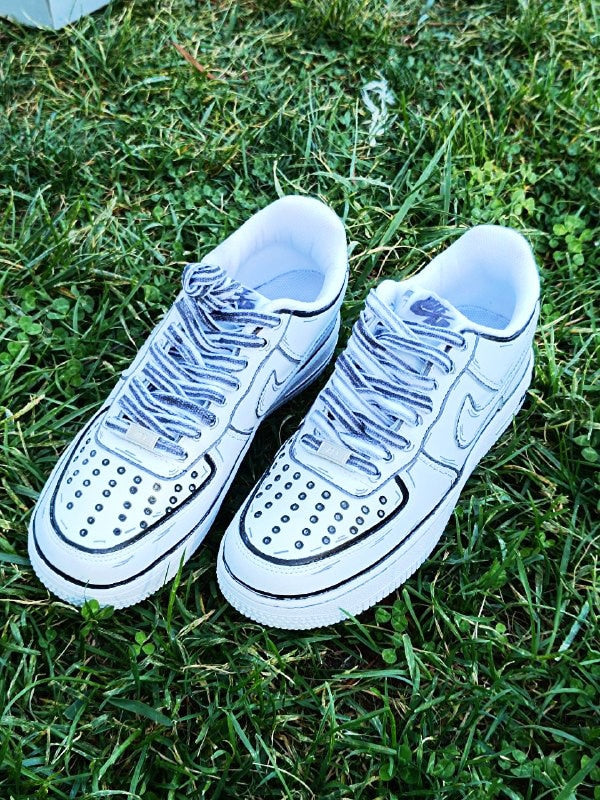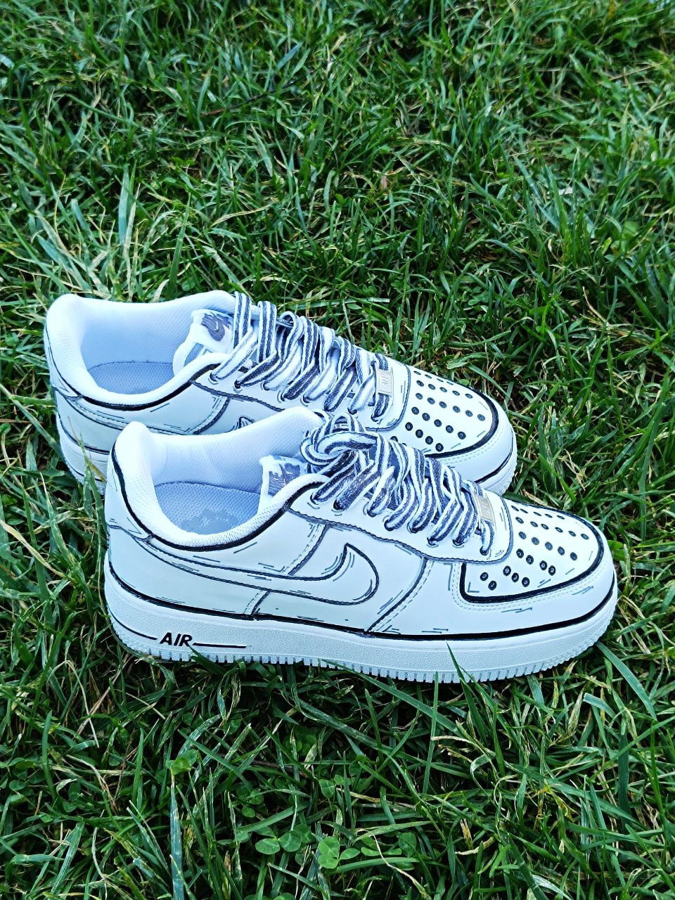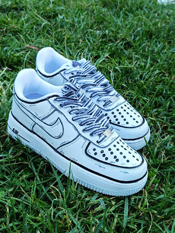 Step into the unconventional with our Black White Cartoon Lines Custom Air Force 1. Unleash your daring nature with handcrafted black and white cartoon lines, adding an edgy touch to your style. Stride with confidence and make a statement like no other!