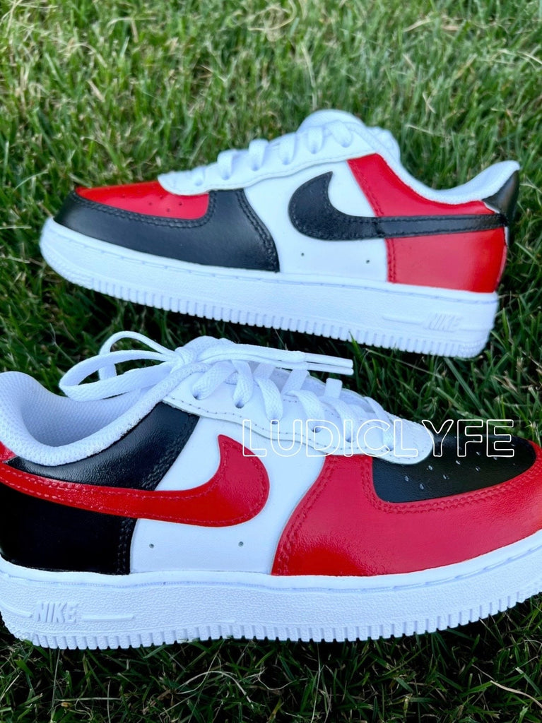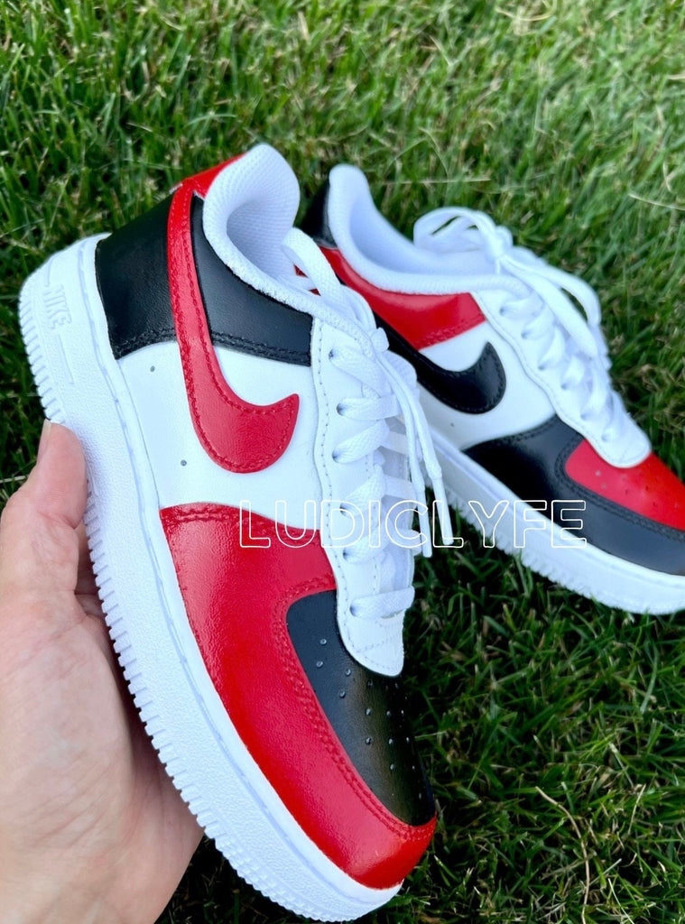 Customize your style with our Black White Red Custom Air Force 1. These shoes feature a unique color combination that will make you stand out in any crowd. Perfect for those who like to add a touch of personality to their wardrobe. (No exclamation points used)