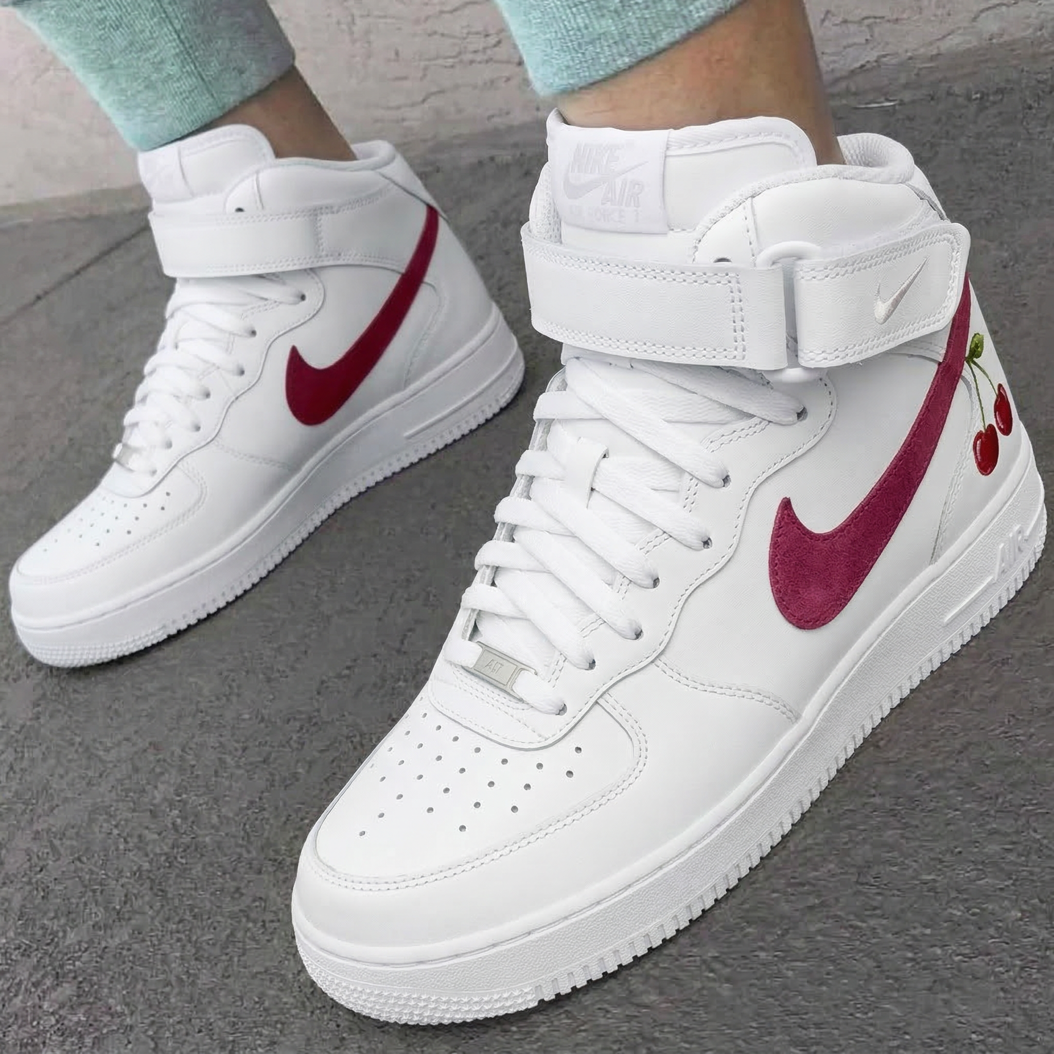 In that fiery split second where cherry red pigment hits smooth leather and unfiltered creativity takes over, these Custom AF1, custom shoes, custom sneakers are born. They’re raw, tactile canvases, where bold suede Swooshes and hand-detailed cherry accents bloom from spontaneous brushstrokes and happy color overlaps. This isn’t just customization—it’s a wild color experiment, every pair one of a kind, a wearable burst of vibrant soul you won’t find anywhere else.