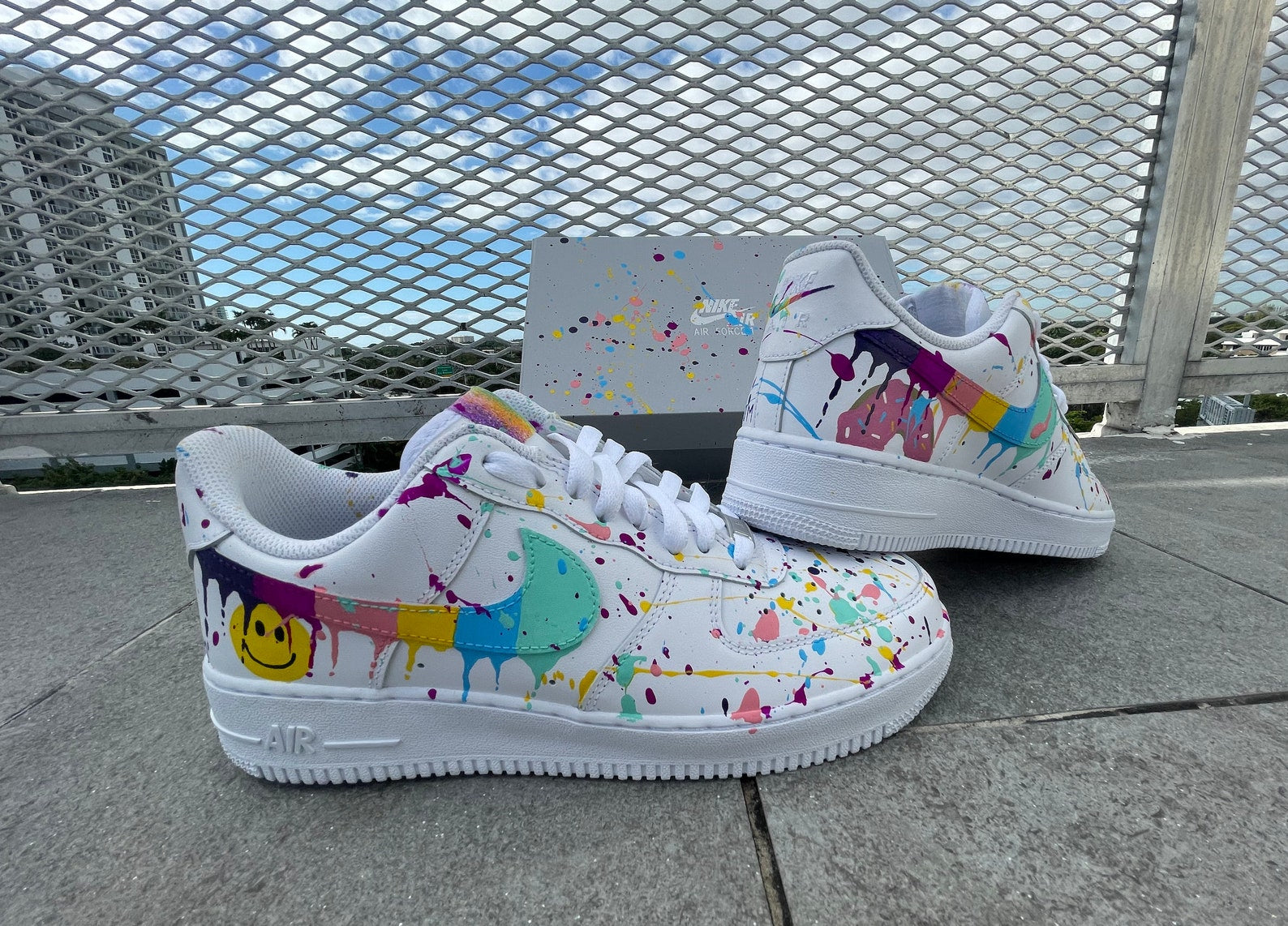 Take on any challenge with our Smile Splash Ink Custom Air Force 1 sneakers. Show off your bold style and stand out from the crowd with our unique design. These sneakers are sure to make you smile and add a splash of fun to your outfit. Don't just walk, make a statement!