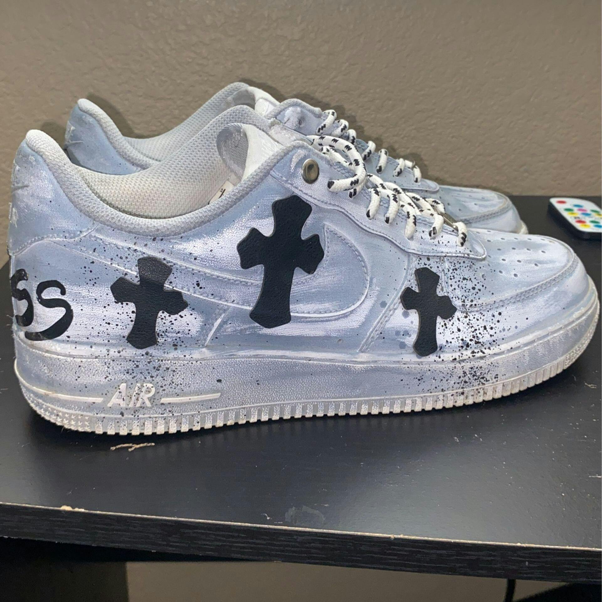 Unleash your bold and adventurous side with the Blue Chrome Hearts Custom Air Force 1. These custom shoes feature a striking blue chrome design that is sure to make a statement. Take your style to the next level and stand out from the crowd with these daring and unique sneakers.