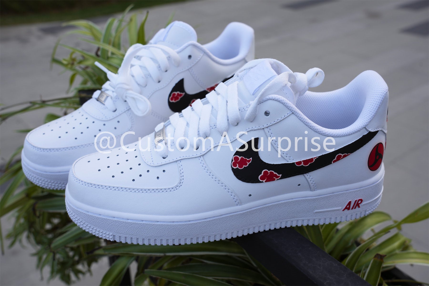 Elevate your sneaker game with our Black Swoosh Red Cloud Custom Air Force 1s. These one-of-a-kind kicks will make a bold statement wherever you go. The sleek black swoosh contrasts perfectly with the vibrant red cloud design, adding a touch of personality and flair to any outfit. Step out in style with these unique and playful sneakers.
