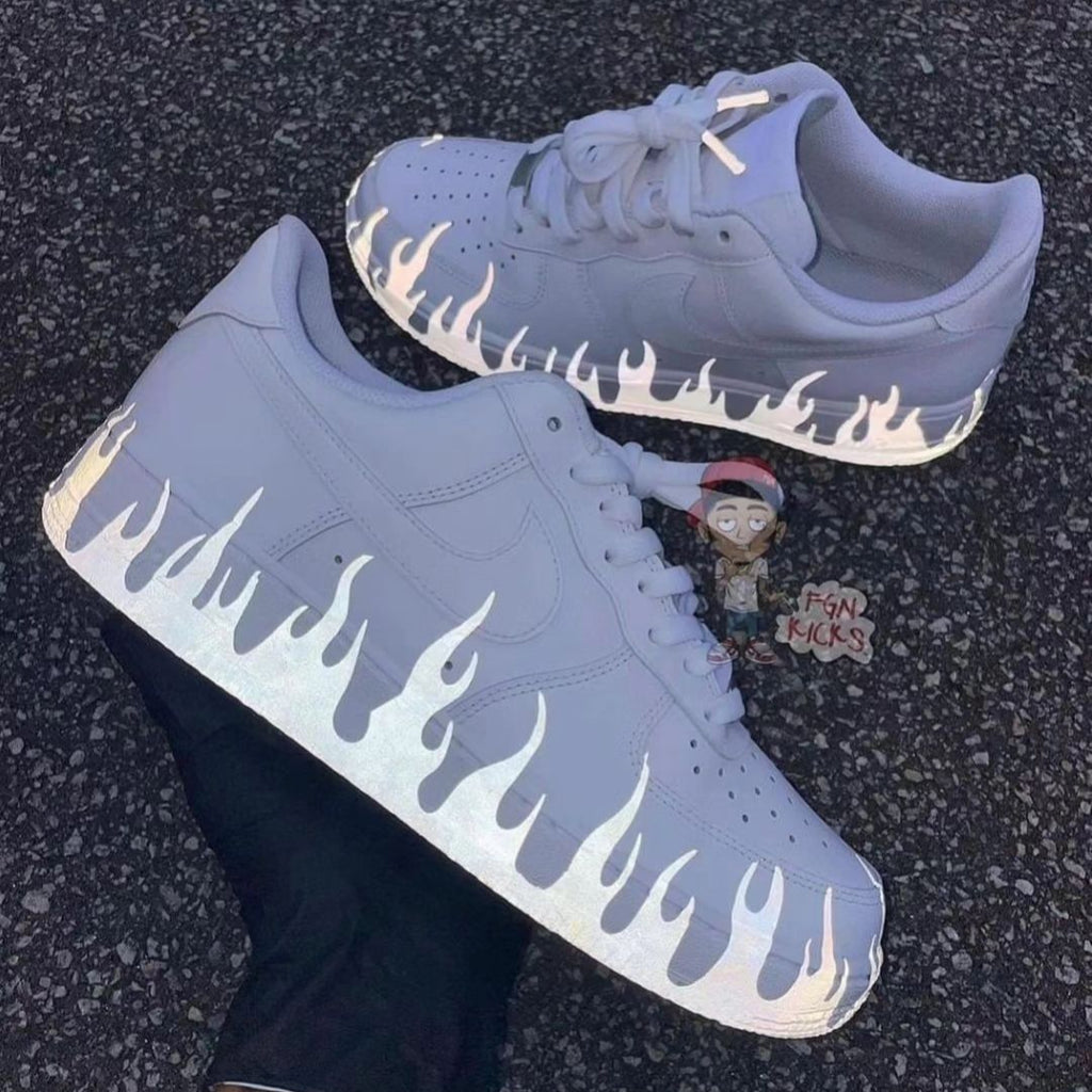 Reflective Fire Pattern White Custom Nike Air Force 1