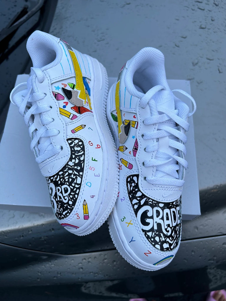 Step up your sneaker game with these one - of - a - kind Custom AF1s! These Custom shoes are a true masterpiece, featuring a vibrant school - themed graffiti design that's sure to turn heads. Each pair is hand - painted with care, showcasing elements like apples, pencils, and chalkboards that bring a nostalgic school vibe to your footwear. The multicolor design is not only eye - catching but also a celebration of creativity. Whether you're a student, an educator, or just someone who loves unique fashion, these Custom Sneakers are the perfect addition to your collection. They combine the classic comfort of Air Force 1s with a personalized touch that makes them stand out from the crowd. Get ready to make a statement with these amazing custom kicks!