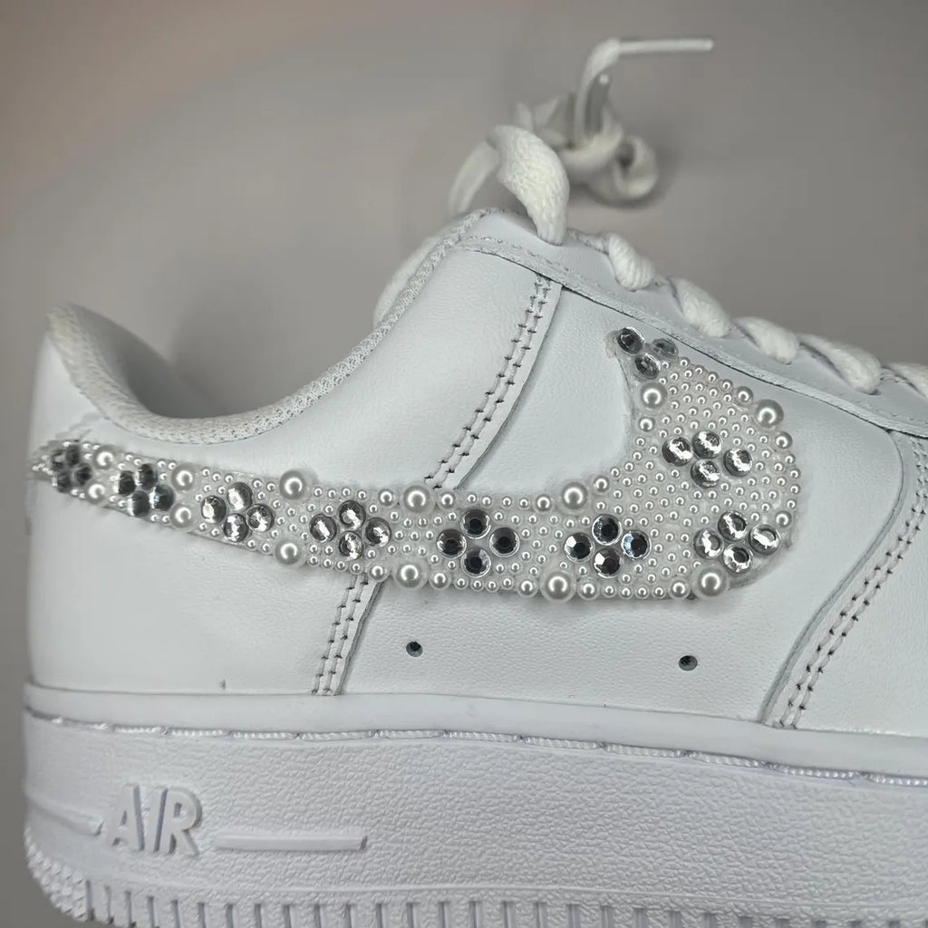 Custom Air Force 1 White With Pearl And Rhinestone Embellishment