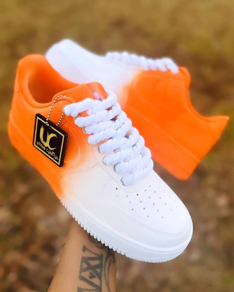 Get ready to turn heads with these Orange White Gradient Custom Nike Air Force 1 shoes! With a unique gradient design and customizable feature, you'll stand out from the crowd and express your unique style. Perfect for any sneaker enthusiast looking to add a little flare to their wardrobe.