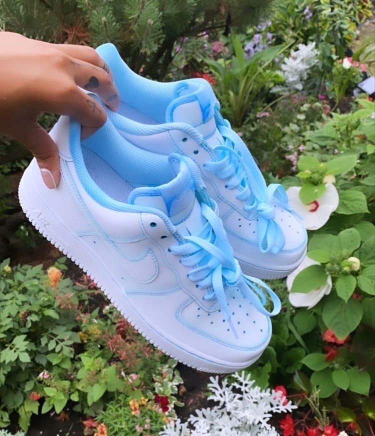 Unleash your inner fly with these Baby Blue Lines Custom Air Force 1s. These kicks feature a unique and stylish design with baby blue lines, perfect for making a statement. Walk comfortably and confidently with the iconic Nike Air Force 1s. (Fly fashion and comfort, these custom Air Force 1s are sure to turn heads.)