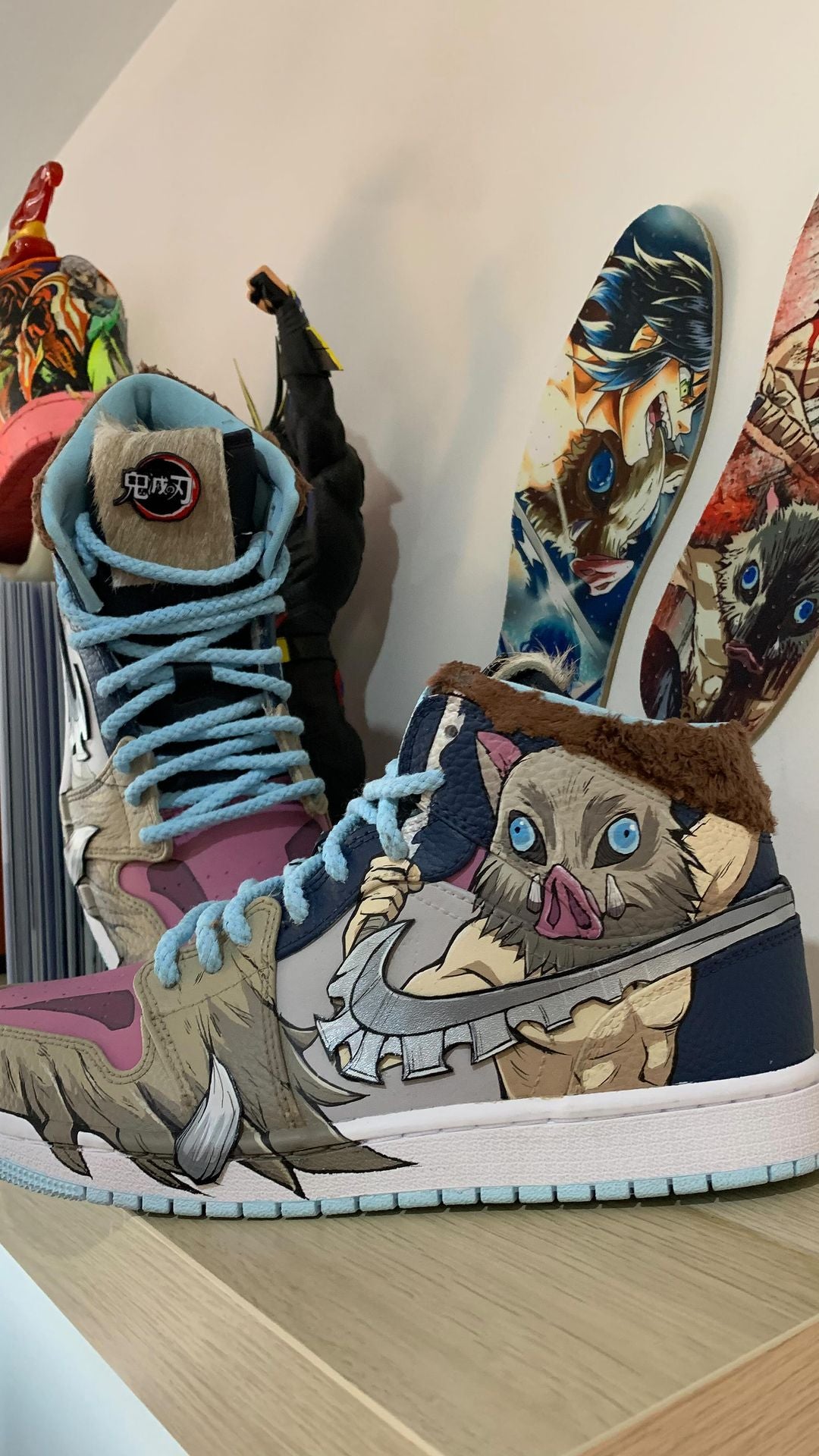 Step into the world of Demon Slayer with these custom Air Jordan 1s! Stand out in style with these one-of-a-kind sneakers featuring your favorite characters. Perfect for any fan, these shoes are sure to turn heads and showcase your unique taste. (Feel like a true demon slayer with every step!)