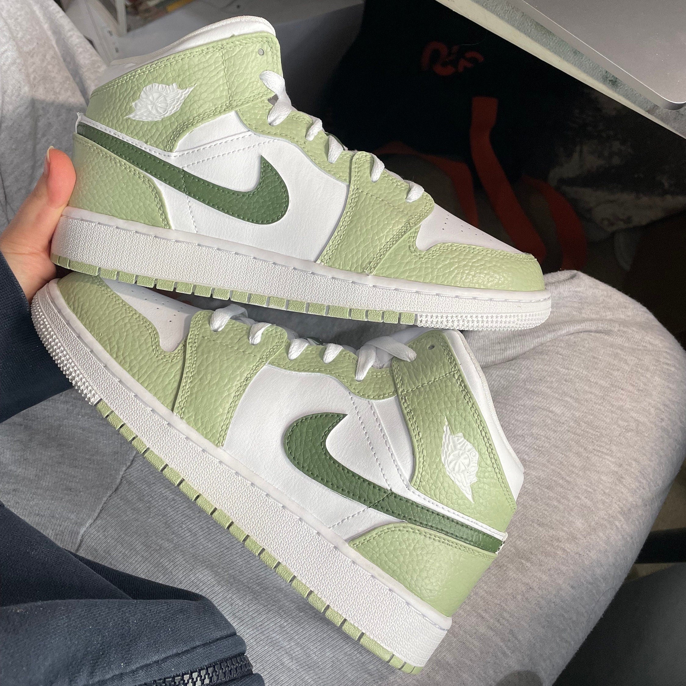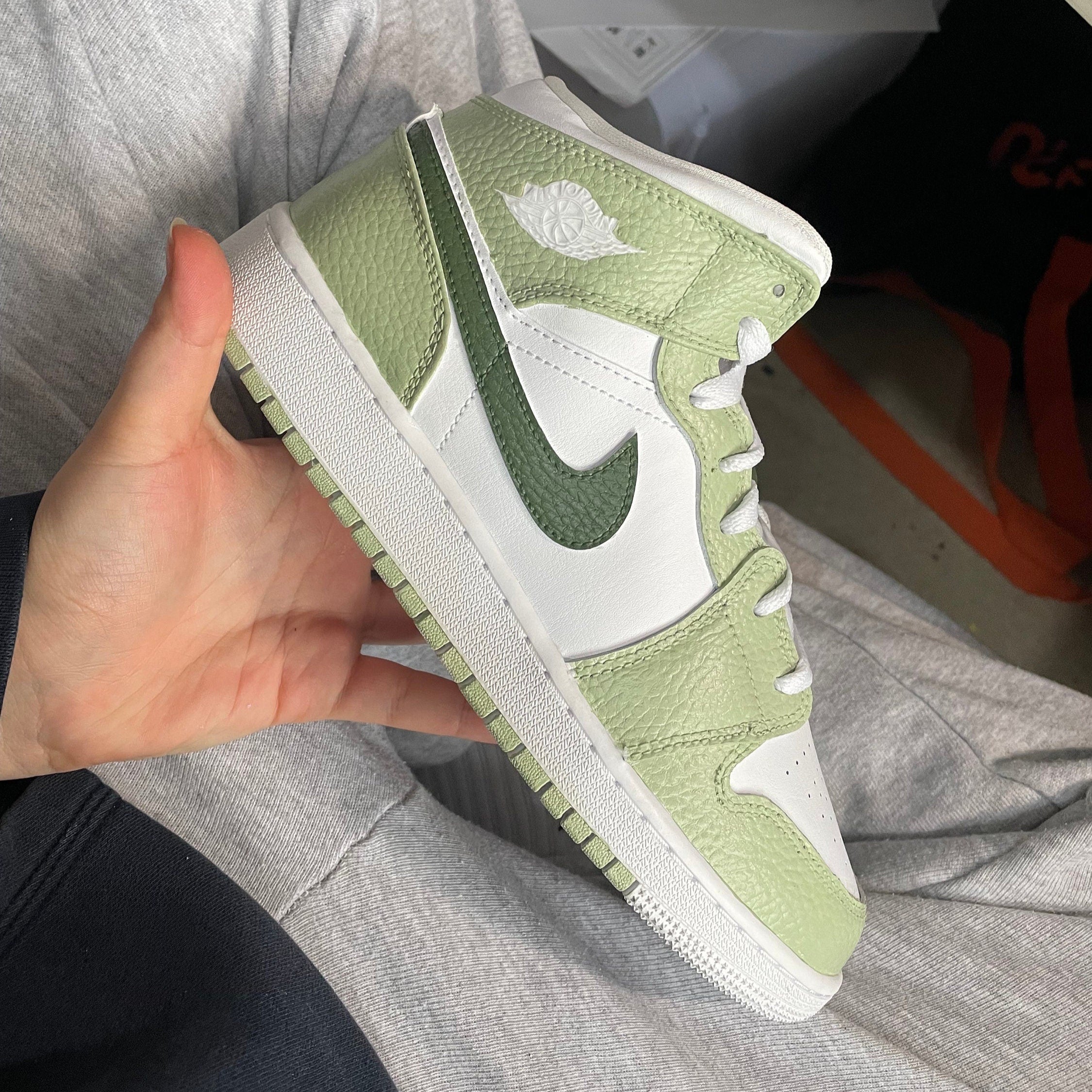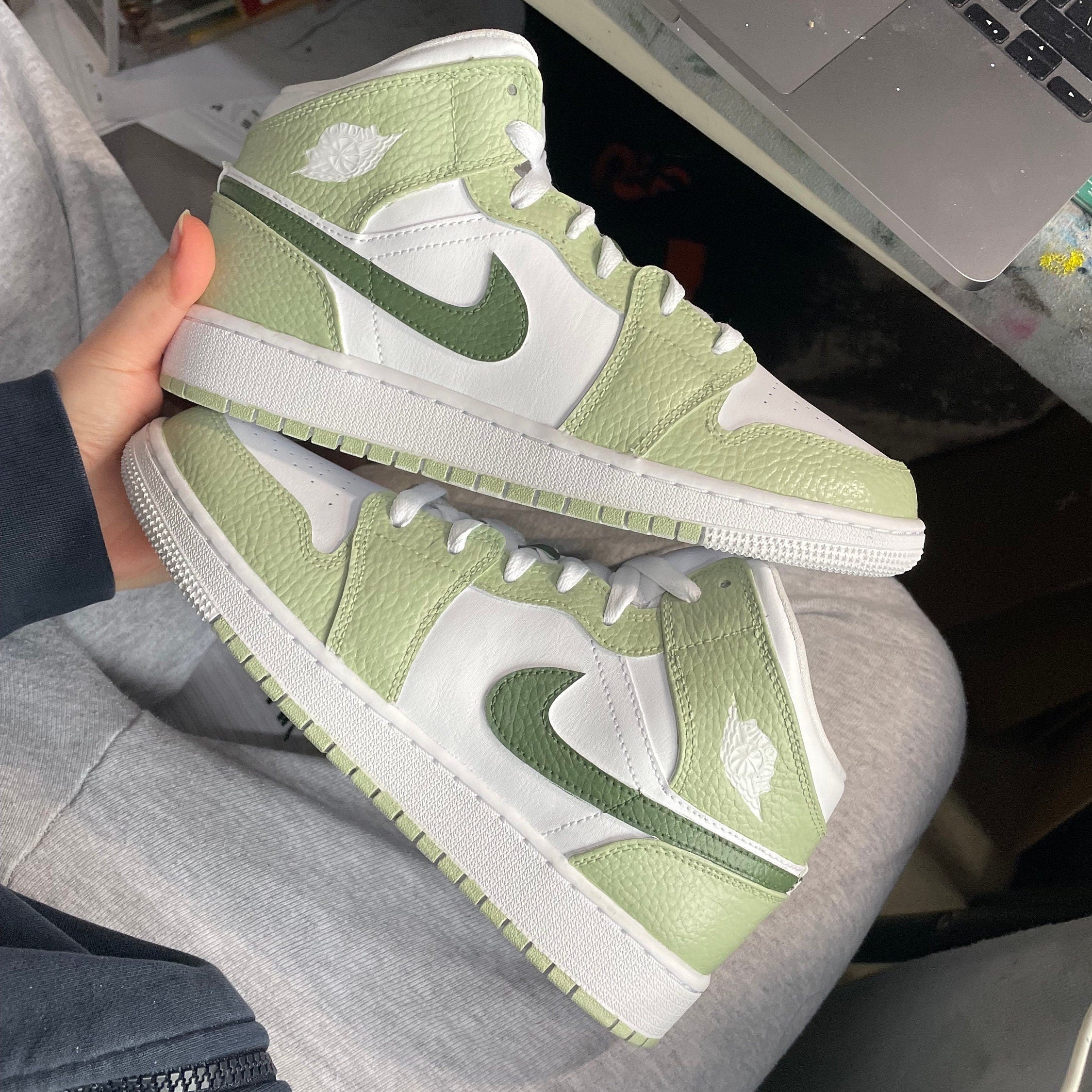 Get your green on with our Matcha Green Custom Air Jordan 1! Made with premium materials and expert craftsmanship, this shoe is not only stylish but also environmentally friendly. With a unique colorway and eye-catching design, these kicks are a must-have for any sneakerhead.
