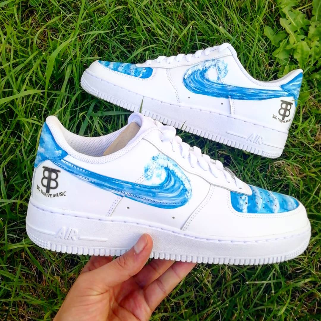 Jump into style with the Ocean Wave Custom Air Force 1. These one-of-a-kind sneakers feature a unique ocean wave design, adding a splash of color to any outfit. With custom detailing and a comfortable fit, you'll make a statement wherever you go. Make waves with these custom kicks!