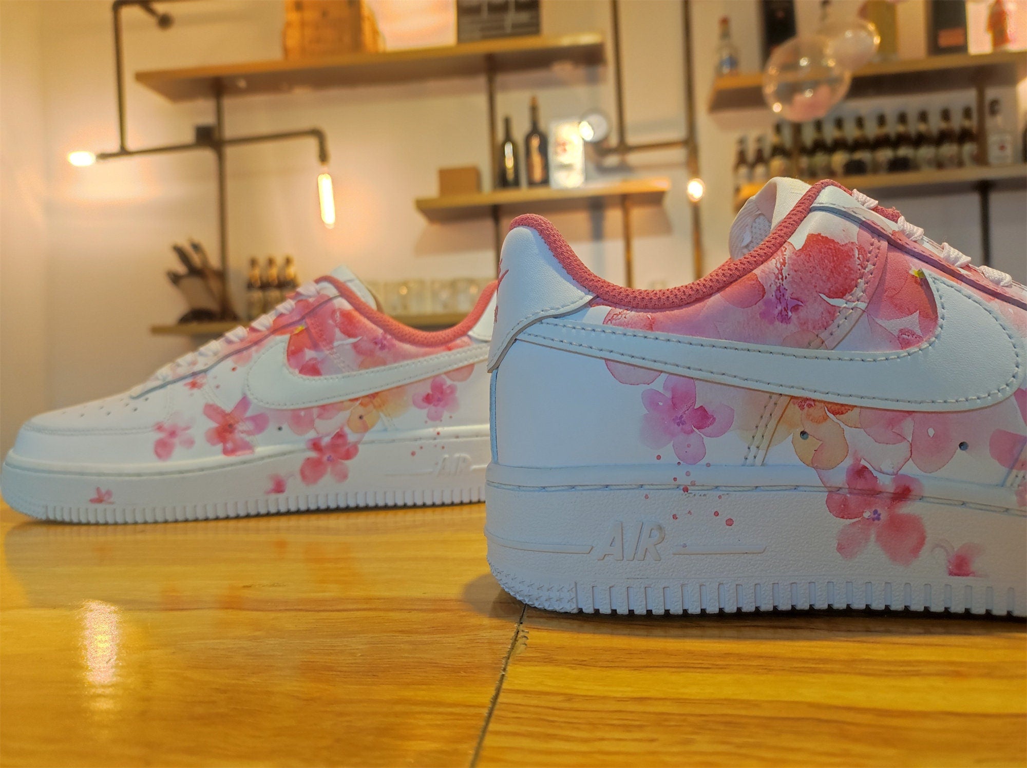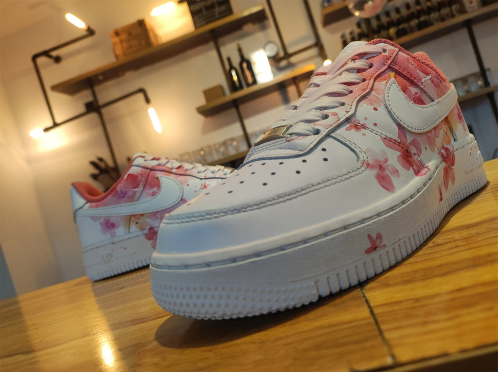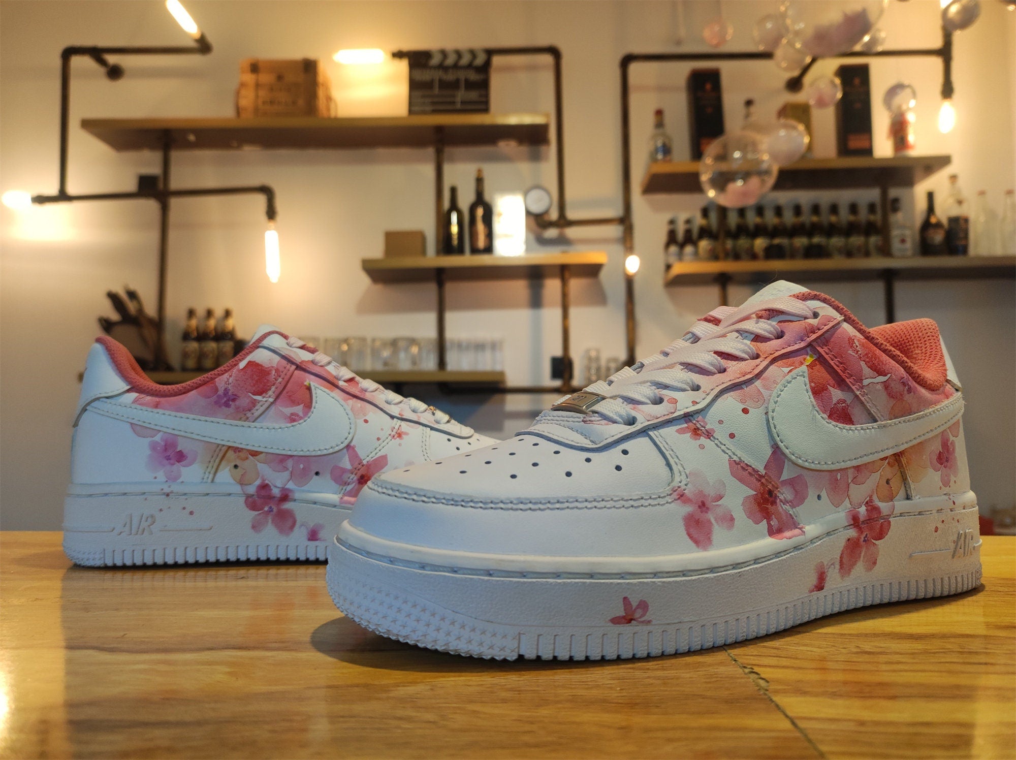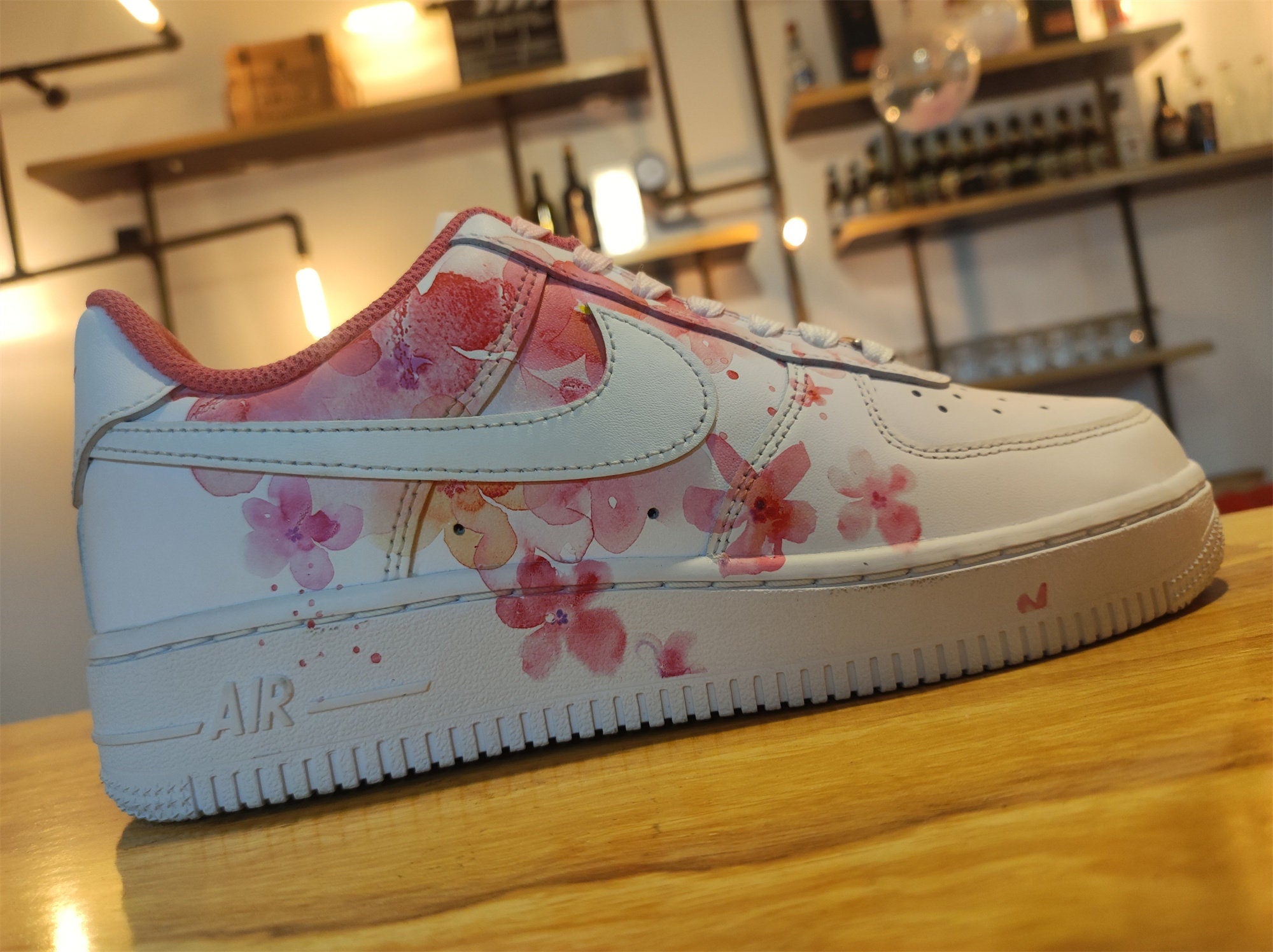 Add a pop of pink to your step with our Pink Plum Custom Air Force 1s. These one-of-a-kind shoes feature a playful pink plum design that will surely make you stand out. Made with high-quality materials, each pair is uniquely crafted for maximum comfort. Step up your shoe game with the Pink Plum Custom Air Force 1s!