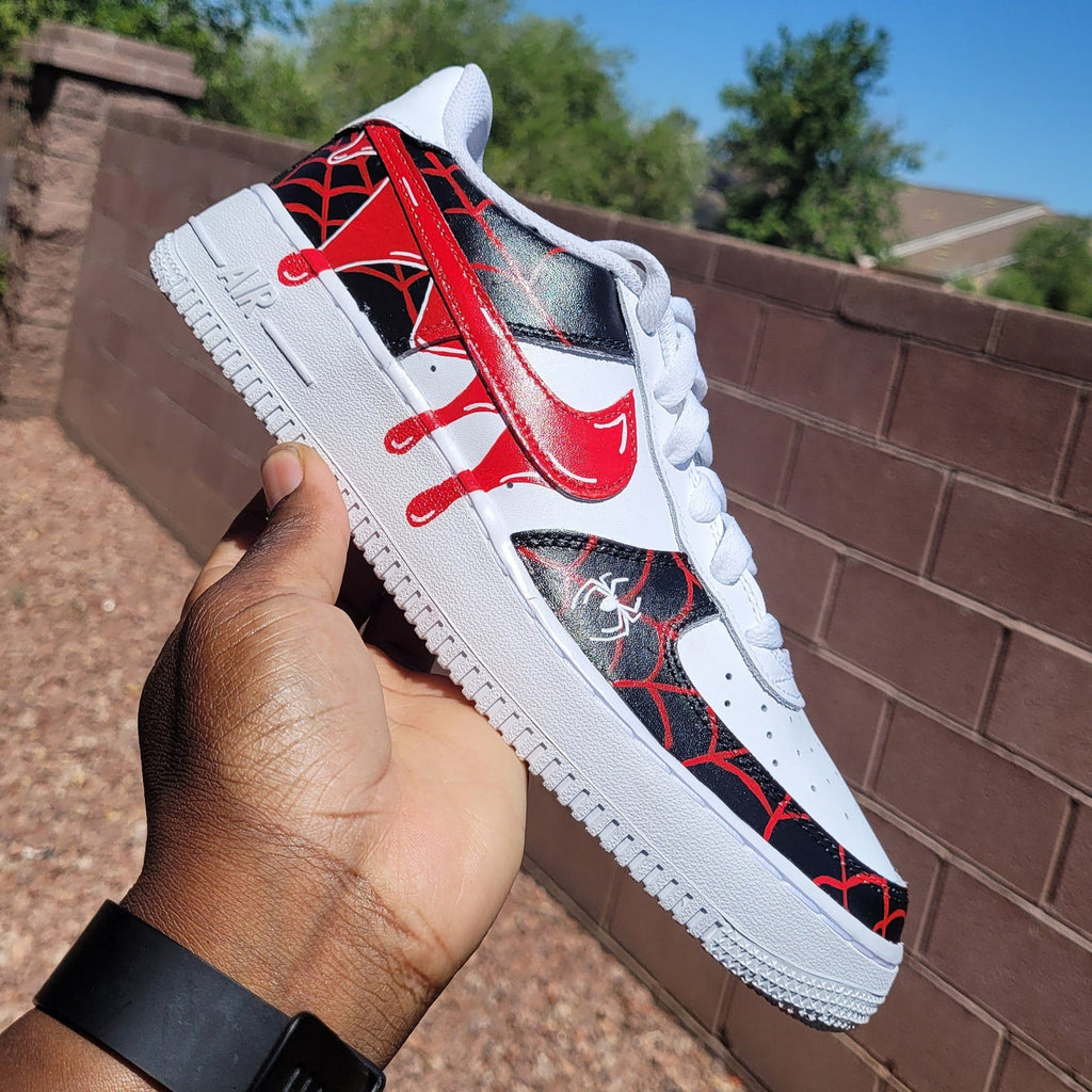 Step into a web of style with our Red Black Spider Web Custom Air Force 1 shoes. These one-of-a-kind kicks feature a bold red and black color scheme, perfect for those who like to stand out from the crowd. With a unique spider web design, these shoes are sure to catch everyone's attention. Don't miss this chance to add some edge to your shoe collection!