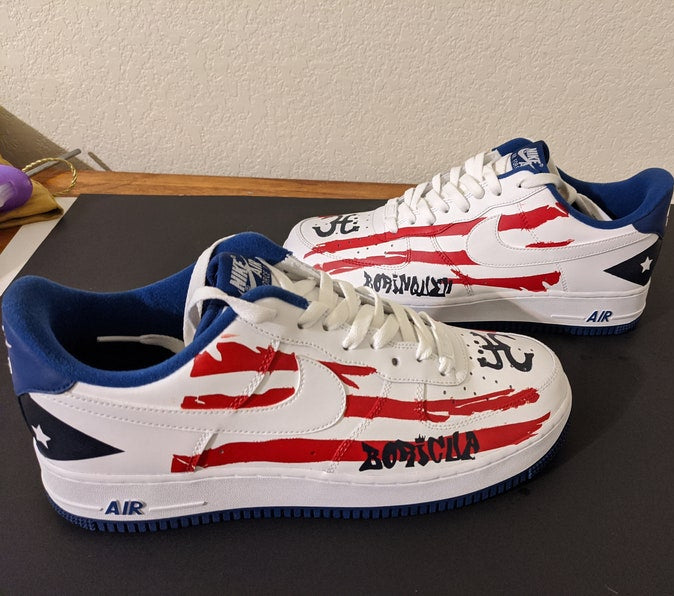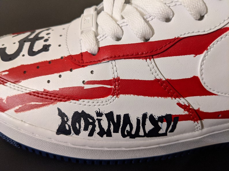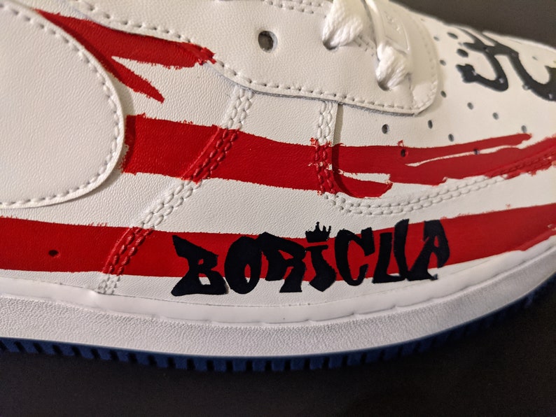 Step up your sneaker game with the Red Lines Borinquen Custom Air Force 1. These unique kicks feature a bold red design that will make you stand out from the crowd. Take flight in style and showcase your individuality with these one-of-a-kind shoes.