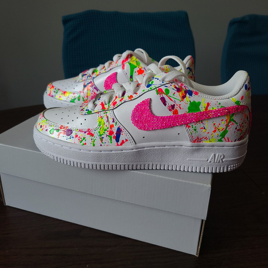 Slip into a playful paradise with these Splash Pink Diamonds Custom Air Force 1s. The vibrant splash design, accented by a pink diamond swoosh, will have you walking in style wherever you go. Put a spring in your step and leave a lasting impression with these unique and fun sneakers!
