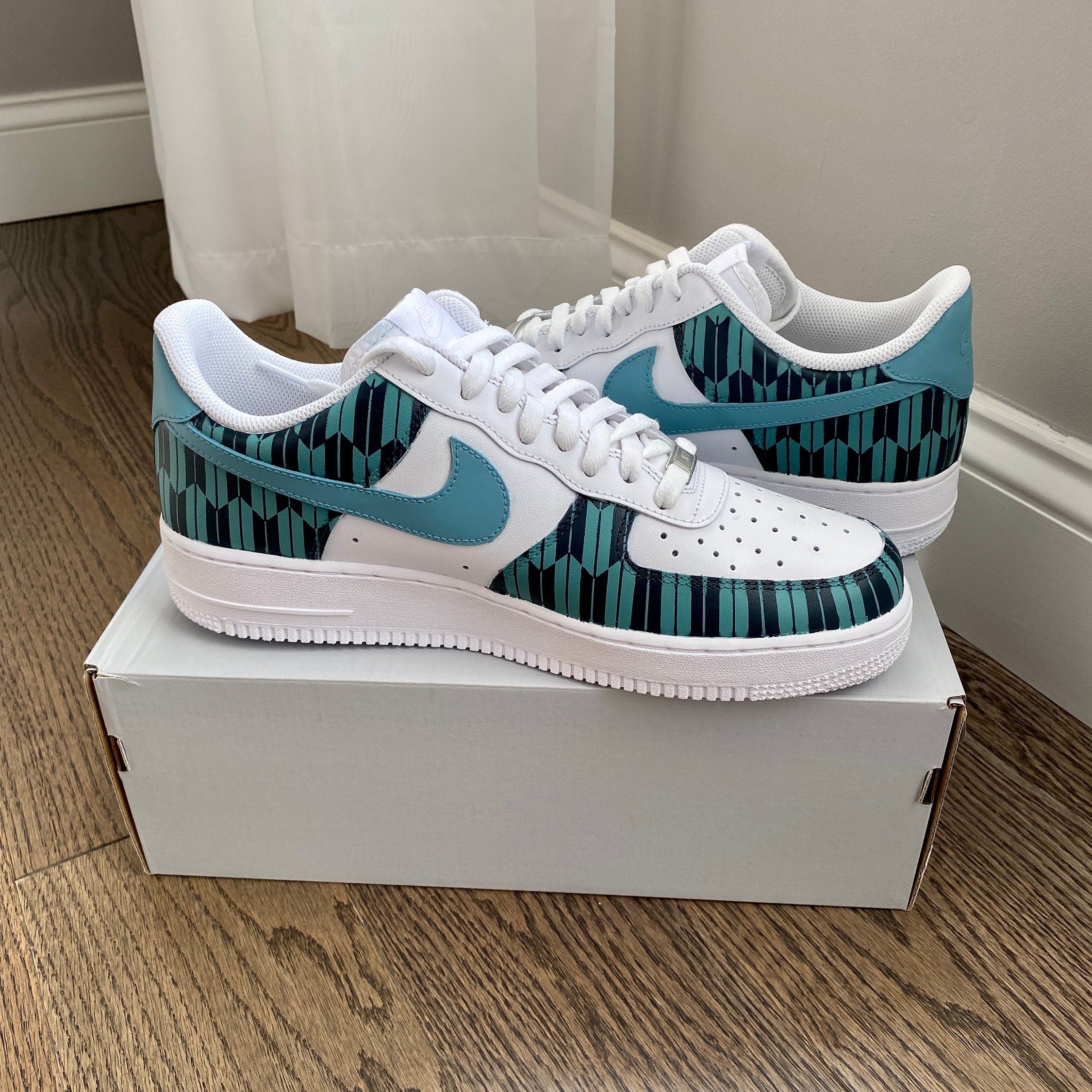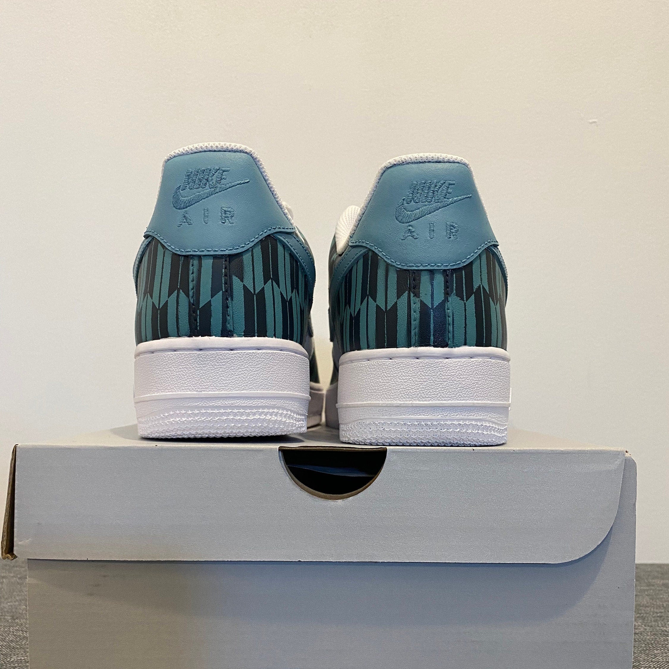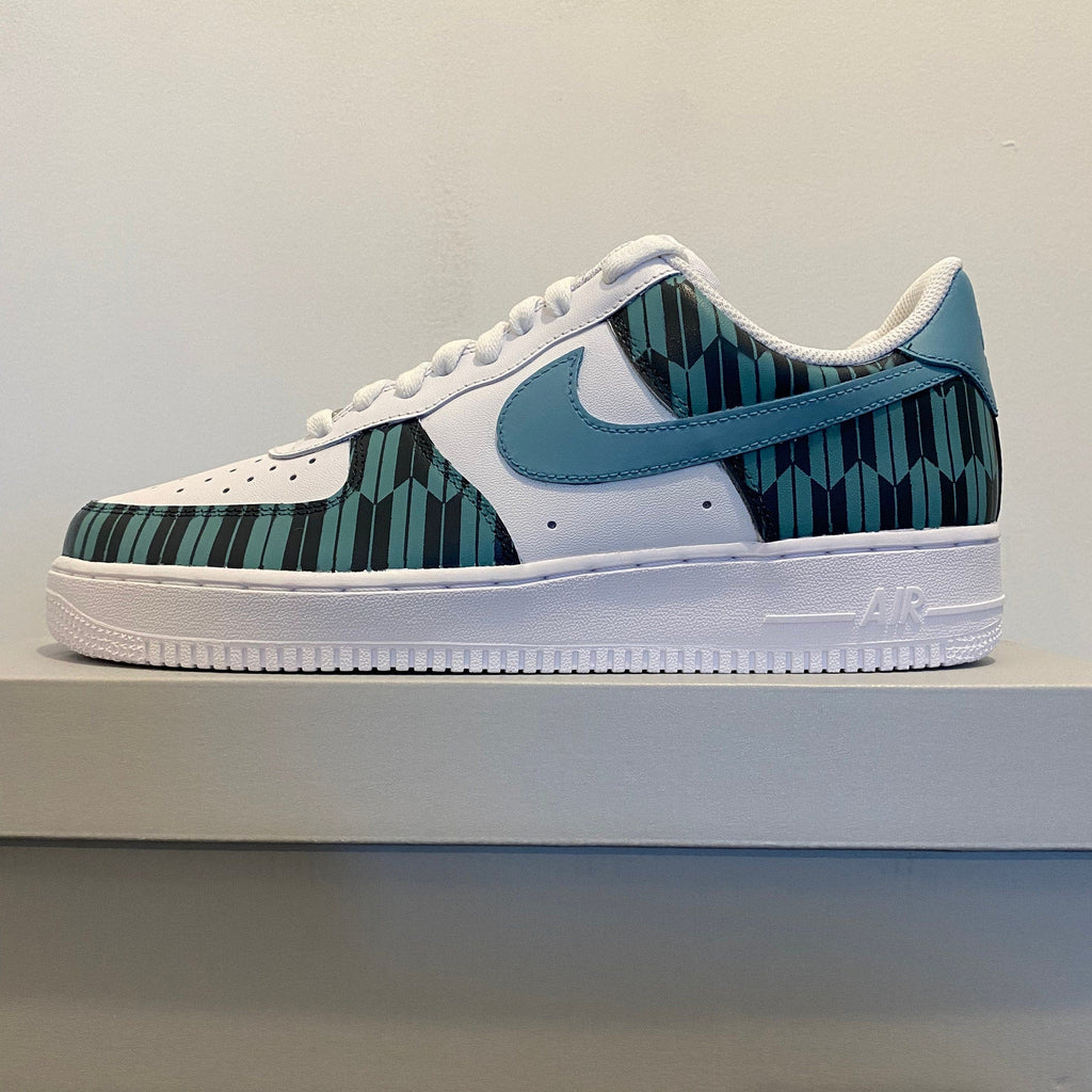 Looking to elevate your style and stand out from the crowd? Take a risk with our Striped Blue Black Custom Air Force 1s. With bold stripes and a sleek design, these shoes are sure to make a statement. Step into adventure and push boundaries with every step.